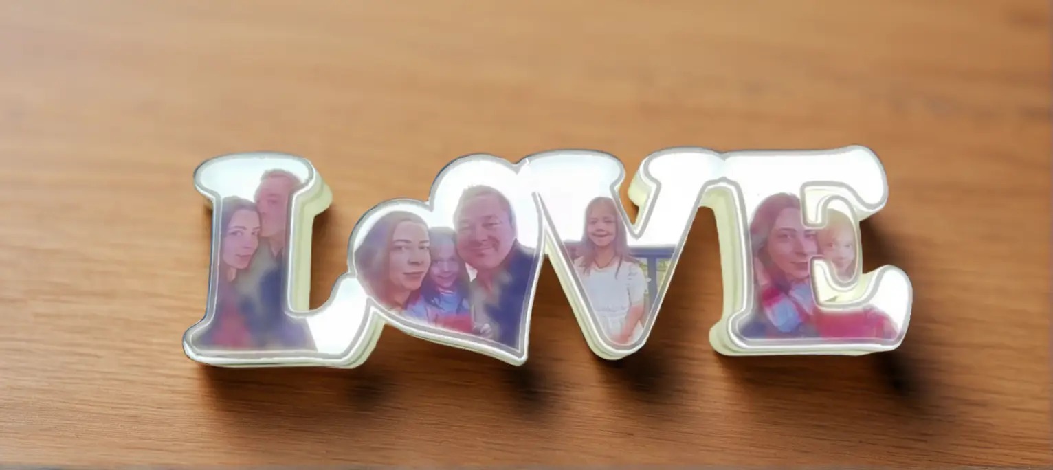 Χειροποίητο φωτιστικό”LOVE” με φωτισμό τενίας LED και τροφοδοσία USB Type-C